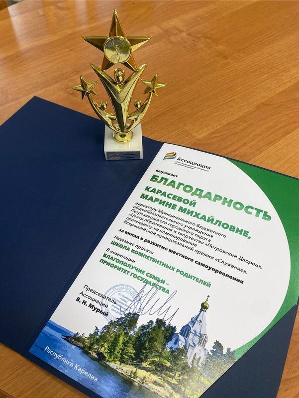 Проект Петровской школы "Школа компетентных родителей" был удостоен высокой награды – Второй всероссийской муниципальной премии "Служение"!