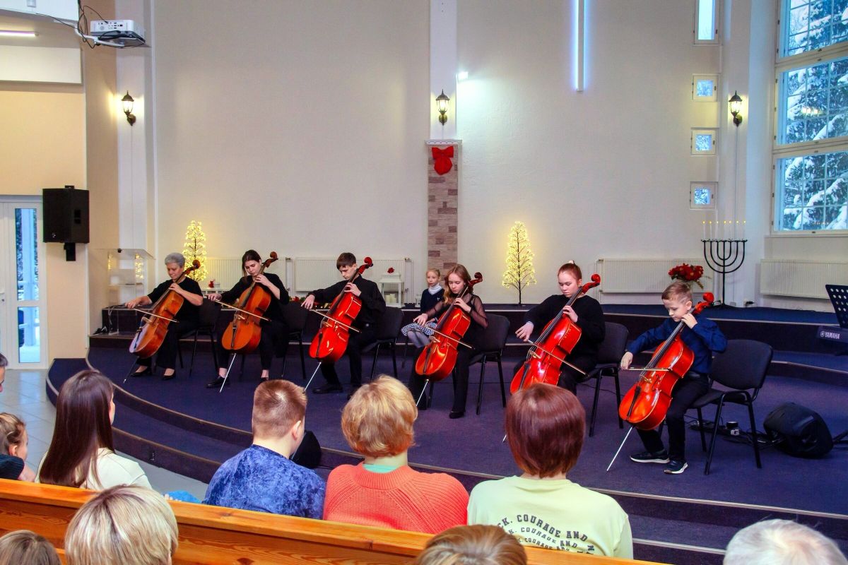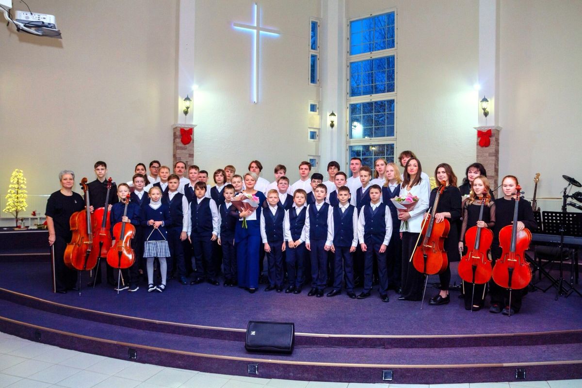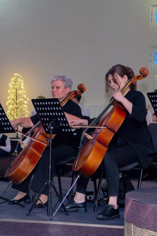 Особенным украшением программы стало сотворчество. Вместе с хором на сцену вышли местные музыканты - ученики Ирины Евгеньевны Канцыпко по классу виолончели. Звучание струнных и детских голосов создало в зале по-настоящему волшебную атмосферу.