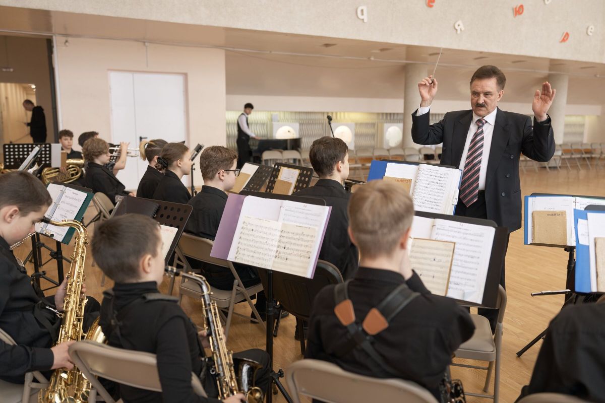 Под живую музыку в исполнении Школы оркестровой игры на духовых и ударных инструментах в торжественном вихре танца объединились дети, родители, учителя и гости праздника.